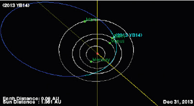 Asteroid 2013 YB14 passes the Earth before being discovered.