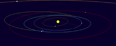 average distance at which the Earth orbits the Sun, and more distant from the Sun than the planet Mars). It is therefore