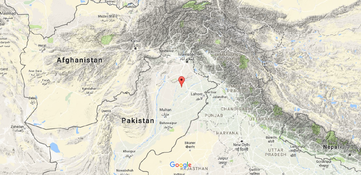 The approximate location of the 27 September 2017 Sargodha landslide. Google Maps.