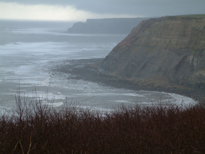 The cliffs at Port Mulgrove expose rocks of the Cleveland Ironstone and Whitby Mudstone formations of the Cleveland Basin. These deposits produce both marine and terrestrial fossils of Early Jurassic origin, including numerous Ammonites, Belemnites, and Plants such as Horsetails, as well as less frequent Reptile and Dinosaur remains. Like all erosional coasts, these fossil beds are most productive during bad weather, when frequent landslips on the unstable coastline expose new material. However, this section of coastline is considered to be particularly dangerous, due to poor access to the beach (and, more importantly, poor egress should one get into trouble), the unstable nature of the cliffs, and the uneven nature of the beach below, which is muddy and strewn with large boulders.