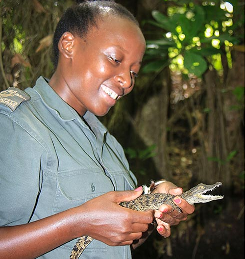 Ezemvelo KZN Wildlife Conservation Manager Mpume Ngcobo, of the St Lucia Crocodile Education Centre, releasing hatchlings into the protected